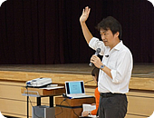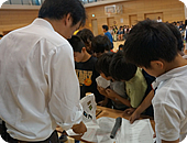 今回は体育館での親子体験授業でした。子どもたちが約130人、保護者の方も70人ほど。先生も合わせると200人を超える大授業でした。お昼を食べた後の2時間。最後まで集中して楽しんでもらえるように、内容を整理して臨みました。