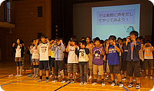 私が伺った翌々日に、来年度の新一年生の保護者向けに体育館で学校の活動を紹介する「かけあい」をする、とのこと。「かけあい」では、一人一言ずつ、必ずセリフがあります。
