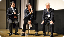 映画評論家の佐藤忠男さんとフジテレビの武内英樹監督(「のだめカンタービレ最終楽章前編・後編」「テルマエ・ロマエ」「テルマエ・ロマエⅡ」など)、西谷弘監督(「容疑者Xの献身」「任侠ヘルパー」「真夏の方程式」など)が各作品の学生監督とのトークセッションを行いました。