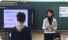 足立区立栗島小学校の5年1組と2組でそれぞれ音読の授業を行いました。