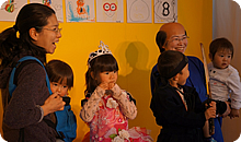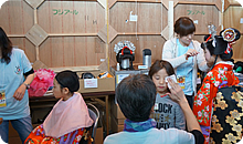 本物のメイクさん・衣裳さんが手掛け、サザエさんやバカ殿ちびまる子、アイドル、忍者などに変身する“扮装コーナー”。記念撮影のときは大人もみんな笑顔になっていました。