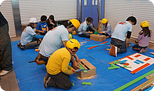 大道具スタッフと作業する“ノコギリ体験”、“輪ゴム銃づくり”や描いた絵がセットになる“お絵かき”など、約130人の子どもたちが楽しみました。