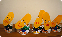皆が、どっこくんのお面を作って、頭にかぶっているんです!!!みんな思い思いの色に自分で塗ってかぶっています。楽しみにしてもらっていたことが本当に嬉しくて忘れられない思い出です!!