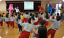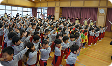 続いて訪れたのは同じく花巻市にある大谷幼稚園です。250人近い元気いっぱいの園児たちが来てくれました。