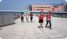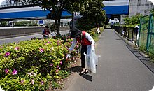 CSR推進プロジェクトメンバーが社内に呼びかけたところ、各部署から55人が駆けつけてくれました。初夏の爽やかな陽気の下、みんなで社屋やテレポート駅周辺を清掃しました。