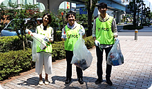 梅雨の晴れ間の7月10日、第8回フジ・メディア・ホールディングス合同清掃活動を行いました。社屋イベント「お台場夢大陸~ドリームメガナツマツリ~」を前に、お台場エリアをキレイにしようと、グループ各社17社から89人が参加。約40分間の清掃で、70リットルのゴミ袋23個分のゴミを回収しました。この活動は2012年10月から年3回(3月・7月・10月)定期的に行っているもので、回を重ねるごとにホールディングスの結束が強まっています。