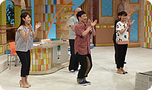 イベントの様子を映像とともに説明し、スタジオのみなさんと一緒に「どっこくん。体操」もしました。