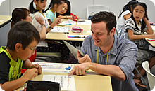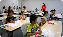 英語の原稿を見てはじめは不安そうだった子どもたちも講習を受け次第に表情が変わってきました。