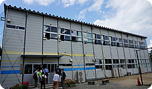 現在、福島県本宮市の仮設校舎で生活している2、3年生27人を対象にコミュニケーションの授業を行いました。