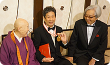 授賞式典後のレセプションは、作家の瀬戸内寂聴さんや映画監督の山田洋次さんをはじめ、政財界人、各国大使らがお祝いに駆けつけ、華やかに行われました。