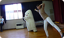 私も子どもたちと「発声練習」したり、「どっこくん体操」をするうち、だんだん体がほぐれてきて、終盤の「ピーヒャラダンス」では、大汗に・・・