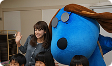 今回の先生は新人の宮司愛海アナウンサー、そして盛り上げ役はわれらのラフくんです。若さ溢れる宮司先生とラフくんに、元気いっぱいの子どもたちで盛り上がった出前授業でした。