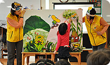 1歳~6歳の幅広い年齢の子どもたちですが、みんな初めて見る巨大紙芝居に興味津々。