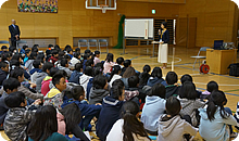 4月から最終学年になろうというドキドキの5年生、約120人が一同に会し「スピーチ」の授業を行いました。