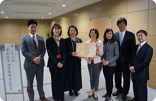 (右) 小田多恵子(フジテレビ放送文化推進局長) フジテレビが展開する被災地支援活動の功績が認められ、総務省の中央非常通信協議会から「第26回中央非常通信協議会表彰」を受賞し、3月15日に表彰式が行われました。