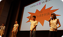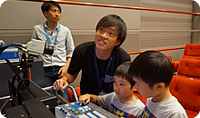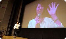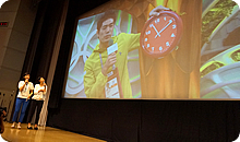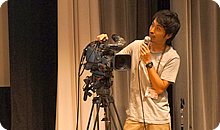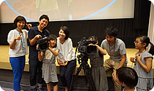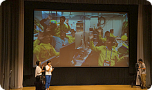 そのあとは前回同様「テレビカメラマンのお仕事」について、“本物”の現役カメラマンが映像を見せながら説明。そのあとは「ビデオエンジニア」の仕事(=画面の色調整や画像の切り替え)を、大きなスクリーンを使って実演も交えながら披露しました。
