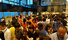 9月8日に、社内向けの懇親大会『チャリティ・フェスタ「ちょい呑み2016夏」』を開催しました。このチャリティ・フェスタは2014年に始まって5回目となり、今回は九州沖縄エリアの系列局の協力を得て、それぞれ地元選りすぐりの日本酒、焼酎、泡盛、地ビール、ご当地フードが振る舞われ、社員食堂は大勢の社員・スタッフでずっと超満員状態でした。