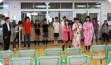 前半の授業では、姿勢、基本の「あ・い・う・え・お」から、お腹の息の使い方、滑舌、伝え方を中心に特訓!