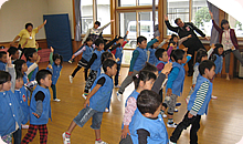 花巻幼稚園では保護者の方も見学する中、始まりました。
