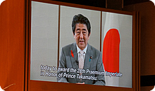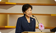 式典には、安倍首相がビデオメッセージを寄せたほか、小池百合子都知事も出席して祝辞を述べました。