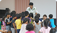 10月25日、沖縄県西原町の西原幼稚園と那覇市の鏡原保育園で食育出前授業『ハロー!どっこくん。』を開催しました。