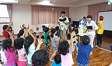 どっこくんの紙芝居園児のみんなも真剣な表情で聞いてくれて、質問すると手がたくさん挙がりどの子にあてようか迷ってしまうくらい。「どっこくん体操」はみんな“予習済み”だったので、全員が全力で体を動かし、「ピーヒャラダンス」を私がレクチャーしながら一緒に踊ったりとあっという間に時間が来てしまいました。汗だくのまま次の園に向かいました。