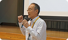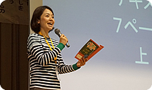 実況を披露する近藤アナウンサー しかし、一緒に講師を務めてくれた近藤アナウンサーが「アナウンサーの仕事ってこんなものもあるんだよ」と野球の架空実況を披露すると、「うわー、凄い!」と歓声が上がり子どもたちのテンションもアップ。さすが近藤アナ!本物は子どもたちに伝わるんですねぇ。私も負けじと「きょうのわんこ」の生ナレーションを披露。「あー、聞いたことある!」ありがたい反応。子どもたちと「アナウンサー先生」の距離がぐっと縮まりました。