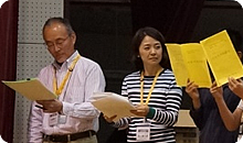 そして、悪いお手本も披露しました。4人のメンバーのうち私一人がやる気のない読み方をしてみました。すると、「西山先生が気持ちこもってない!」「西山先生の声小さすぎて聞こえない!」と厳しい指摘が。みんなの気持ちを一つにして作品を作り上げることの大切さにも気付いてほしかったのです。