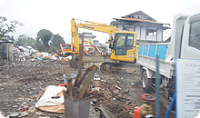 翌朝、八代市のわかみや保育園に向かう途中で、屋根や壁が崩れ、ブルーシートがかけられている住宅がいくつも見えました。地面が隆起しているところも何か所もあり、改めて地震の怖さ、すさまじい威力を目の当たりにしました。