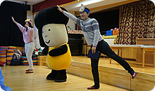 「つぎは、いしかわサンバだよ!おどれるひと~!?」と声をかけると、エネルギーのありあまった子どもたちは教室いっぱいに響き渡る元気な声で「ハイ!ハイ!いしかわさんしってるよ!おどれるよ!」と返してくれました。