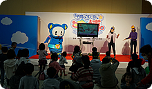 このイベントは、熊本リビング新聞社とテレビ熊本が主催し毎年盛大に開催されている子育て中のファミリーを応援するイベントですが、例年会場となっている益城町のグランメッセ熊本は昨年4月の熊本地震で大きな被害を受け未だに使用できない状態なので、今回は宇土市の会場に変更になりました。2000台収容できる駐車場もあっという間に満杯、郊外からもたくさんの親子が駆けつけてくれたようです。会場では、子どもが遊べる遊具コーナーや、テレビ熊本による「アナウンサー体験」ブース、こどもの健康相談コーナーやご当地グルメなど、たくさんのブースがあり、大勢の親子連れでにぎわっていました。