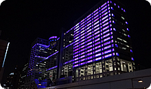 社屋イルミネーション「グリッター8」を活用して、社会課題への支援の意志を発信する「アウェアネスカラー企画」を2016年度も実施しました。この取り組みは、課題について「知ってもらう」きっかけを提供し、問題解決につなげる目的で、2015年4月からスタートしました。2年目となる2016年度はパレットタウンの大観覧車や自由の女神も一緒にライトアップするなど、お台場エリア全体に活動の輪が広がっています。