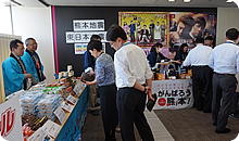 熊本地震と東日本大震災の復興支援につながるようにと、CSRプロジェクトメンバーが中心となり販売会を行いました。熊本の美味しいお菓子や食べ物と、岩手の「遠野まごころネット」の皆さんの協力で岩手の物産もたくさん販売しました。
