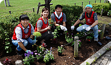 それぞれのチームごとに場所が割り当てられ、植え方の説明を受けたあと さっそく色とりどりの花の苗を植えつけ!