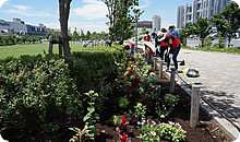 7月5日、東京テレポート駅そばのシンボルプロムナード公園で、花の苗を植える活動に参加しました。 これは臨海副都心まちづくり協議会が環境プロジェクトの一環として行っているものです。