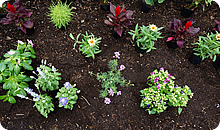 奥には背の高いものを、手前に行くほど低いものを、そして適度な間隔をあけて植えました。 みんな汗だくになりましたが、きれいにバランスよくできました!