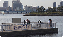 臨海副都心に会社がある21社から115人が参加し、たばこの吸い殻や、缶・ペットボトルなどを拾いながら、気持ちのいい汗をかきました。 桟橋にはTOKYO 2020の文字。 3年後にはここで東京オリンピック・パラリンピックが開催されます。