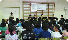 普段行っている『あなせん』とは内容が異なり、「オペラの殿堂」としても有名な東京文化会館のご協力を得て、プロの演奏家による演奏と、アナウンサーによる朗読をミックスさせた授業内容です。演奏してくださったのは、「アンサンブル・ミクスト」という木管五重奏のグループ。