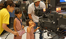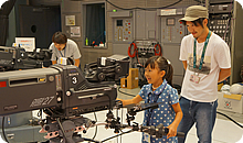 スタジオサブはいつもと違って子どもたちの興奮した笑い声で賑わっていました。普段担当者以外にはなかなか触らせないボタン一つ一つが押されると、いろいろな音や映像が出てきて、どよめきが。いつも真剣な表情の技術スタッフたちの顔にも笑顔が溢れていました。