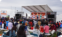 併設されたステージにサザエさん一家が登場。2日あわせて約800人が参加してくれて、番組でおなじみの歌やジャンケンでみんな盛り上がりました。