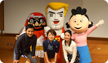 最後に「サザエさん」、テレビ新広島のキャラクター「ヒロシマイケル」、さらに三原市のキャラクター「やっさだるまん」が合流し、写真撮影を行いました。このトリオのコラボレーションはなかなか見られないので、みなさん最高の笑顔で写真を撮ってくれました。