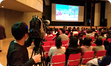 プロジェクターで大きく投影して見るサザエさんは、テレビとは一味違いました。私だけでなく、子どもたちも普段とは違いワクワクしながら見たことでしょう。その後は、会場の全員でサザエさんの歌を大合唱。子どもたちだけでなく大人のみなさんも積極的に参加してくださる会場の雰囲気に、感動すらしました。