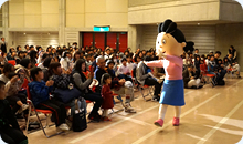 会場の熊野町民会館はとても広く、みなさんにどれくらい集まっていただけるかな?と思っていましたが、我々のいる控室にも元気な子どもたちの声が聞こえてきて、最終的には400人を超える地域のみなさんに集まっていただくことができました。