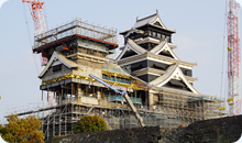 1日目の夕方には、初めての熊本訪問だったので熊本城へ視察に行きました。土台の部分が崩れていたり、熊本城本体もクレーンなどで支えられている状況でした。ニュースなどを通して熊本城の被害や様子を見てはいましたが、自分の目で見ることでより被害の範囲や大きさを感じました。