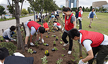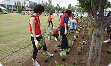 7月4日、CSRプロジェクトチームメンバーと有志で花の苗を植える活動に参加しました。