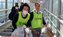 3月8日、台場エリアで「第19回フジ・メディア・ホールディングス合同清掃活動」が行われました。冷たく強い風が吹く中、今回は17社から75人が参加しました。オリジナルの軍手をはめ、トングを駆使し、歩道や植え込みだけではなく、歩道橋の階段やエレベーターの中などのゴミを拾いました。「ビン、缶、ペットボトル」と「それ以外」に分けたゴミは、約45分間で21袋分(70L)になりました。お台場一帯がきれいになり、春を迎える準備は万端です。