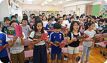 5年生にもなると、恥ずかしくて声もあまり出せないという子も多い中、高島三小のみんなは、声が大きい大きい!パワー溢れんばかりです!