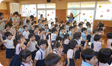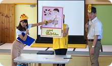大きな紙芝居の中から旬の野菜を探しだすクイズコーナーでは大勢の手が上がり、全員を当てられないのが悔しいほど!『どっこくん体操』も練習してきてくれ、東海テレビのキャラクター・イッチーと共に一生懸命、上手に踊ってくれました♪