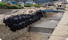 当時、目の前の川に山から土砂が流れ込み、その数メートルの高さをすべて埋め、その勢いから園庭まで土砂が押し寄せたという坂みみょう保育園。イベント当日、水は地上から数メートル下を流れていて、ガードレールから下をのぞいた限りは穏やかな流れでした。