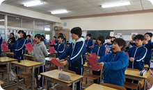 教室にお邪魔して、まずはみんなでこんにちは!元気な声で教室が包まれます。